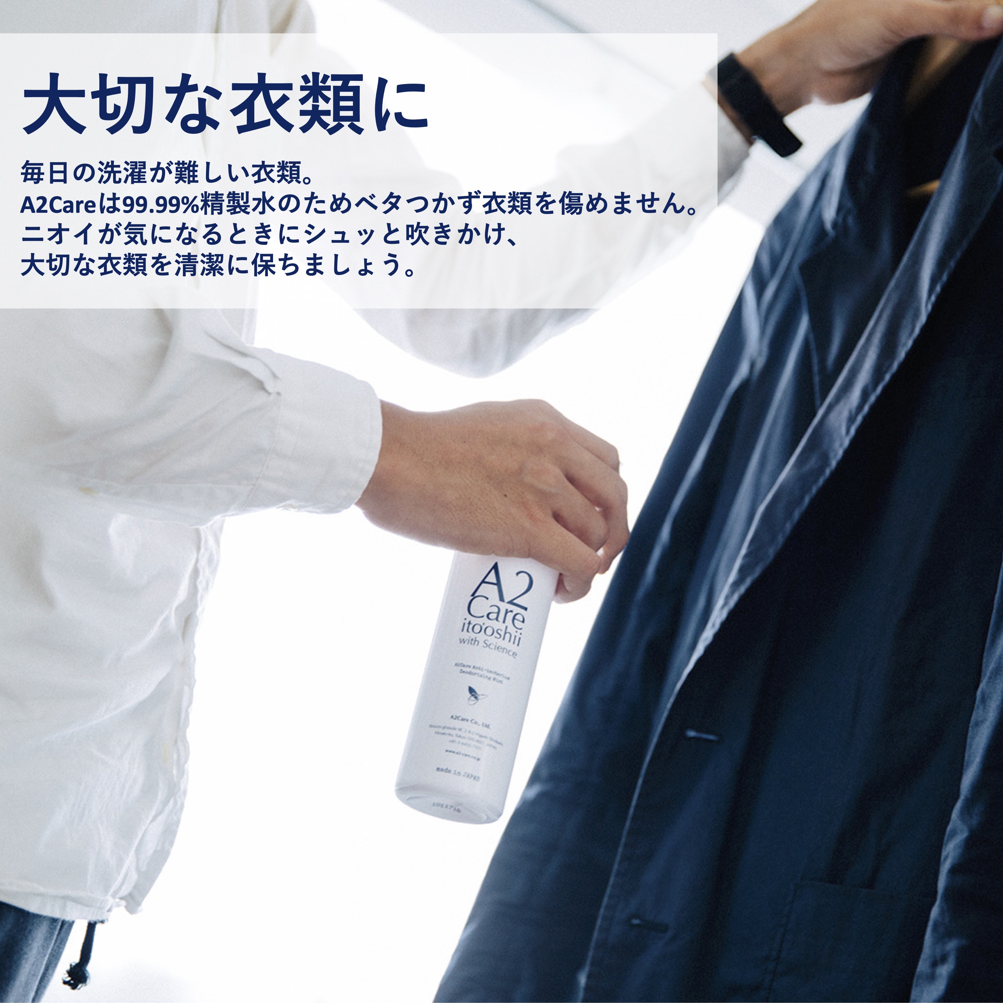 機内やホテル客室で使用されている信頼性の高い無香料の除菌・消臭剤です。衣類の除菌消臭のほか、お子様のおもちゃの除菌やペットのにおい対策など、安心して使用できます。