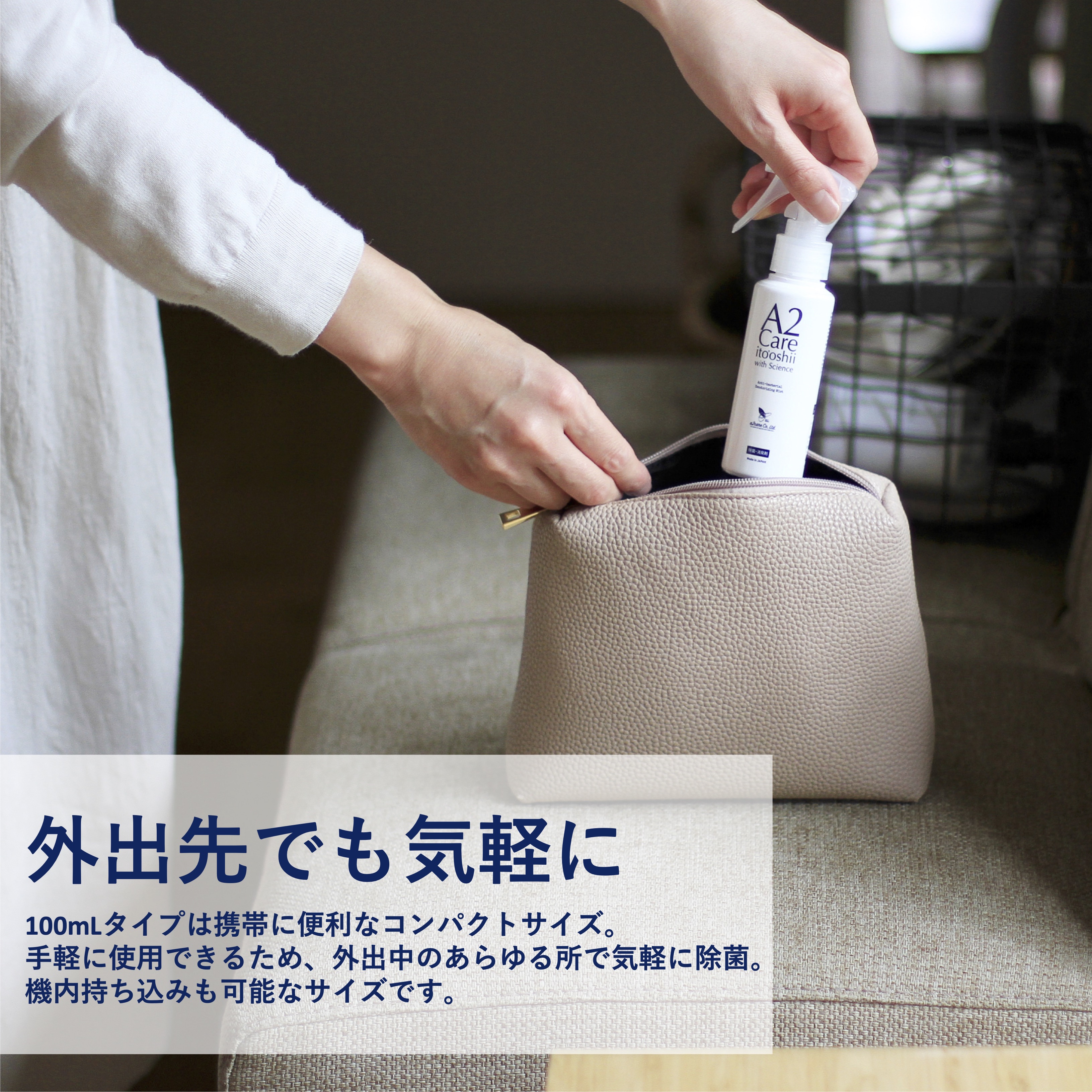 バッグに入れて持ち運べるので、靴や食事後などの衣類の除菌・消臭に最適です。
