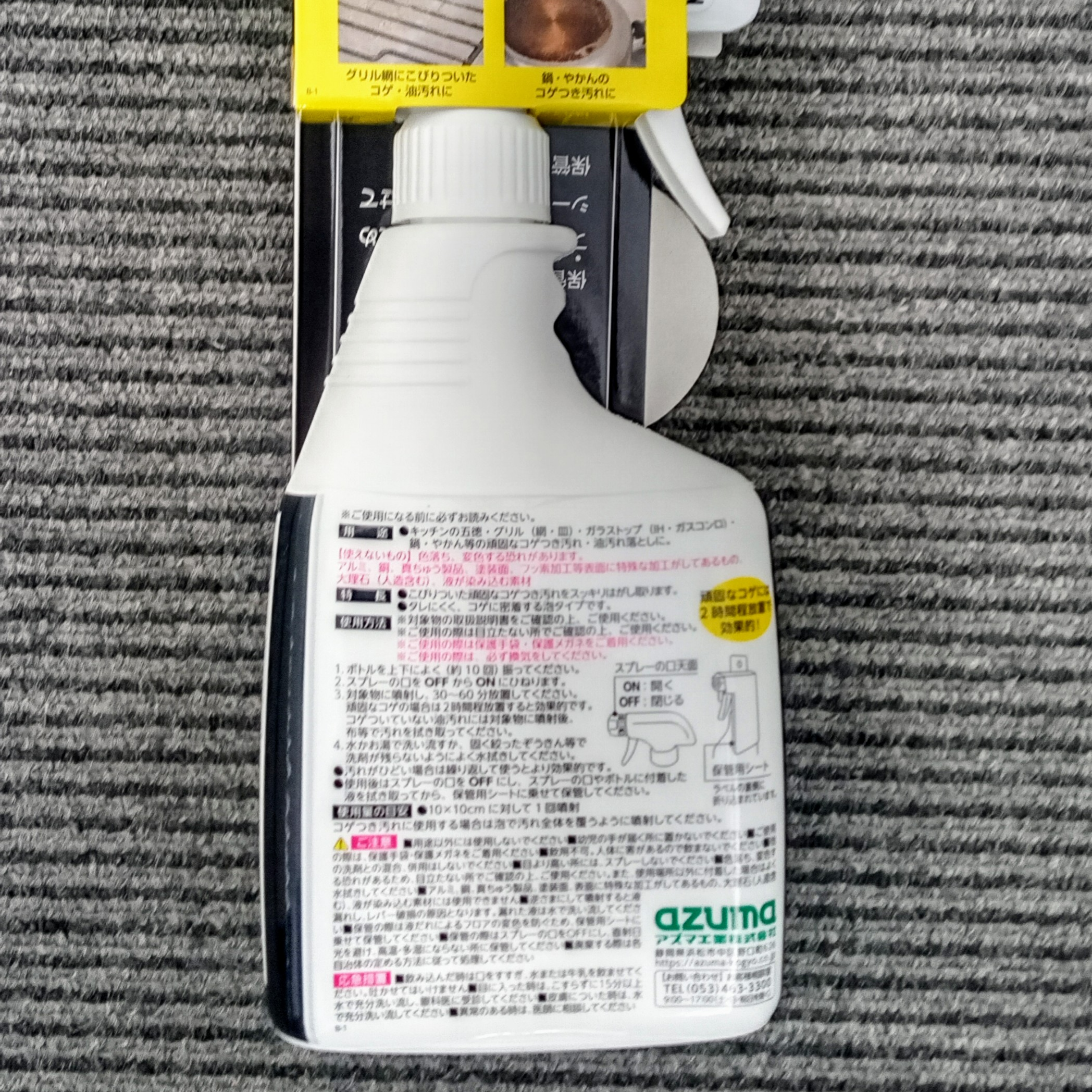 【頑固なコゲには長時間放置で効果的】通常のお掃除であれば、対象物に噴射し、30〜60分放置します。 頑固なコゲの場合は2時間程度放置するとより効果的です。