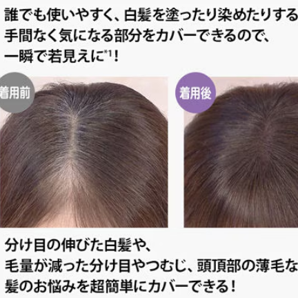 分け目や伸びた白髪や、毛量が減った分け目やつむじ頭頂部の薄毛など神のお悩みを簡単にカバー。