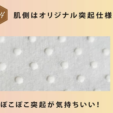 【商品特徴】肌側はオリジナル突起仕様。ぼこぼこ突起が気持ちいい。耳にかける部分は不織布タイプで痛くなりにくいです。鼻の形状にフィットする切れ目つき。気持ちよさを感じることができるように考案した独自のデザインです。